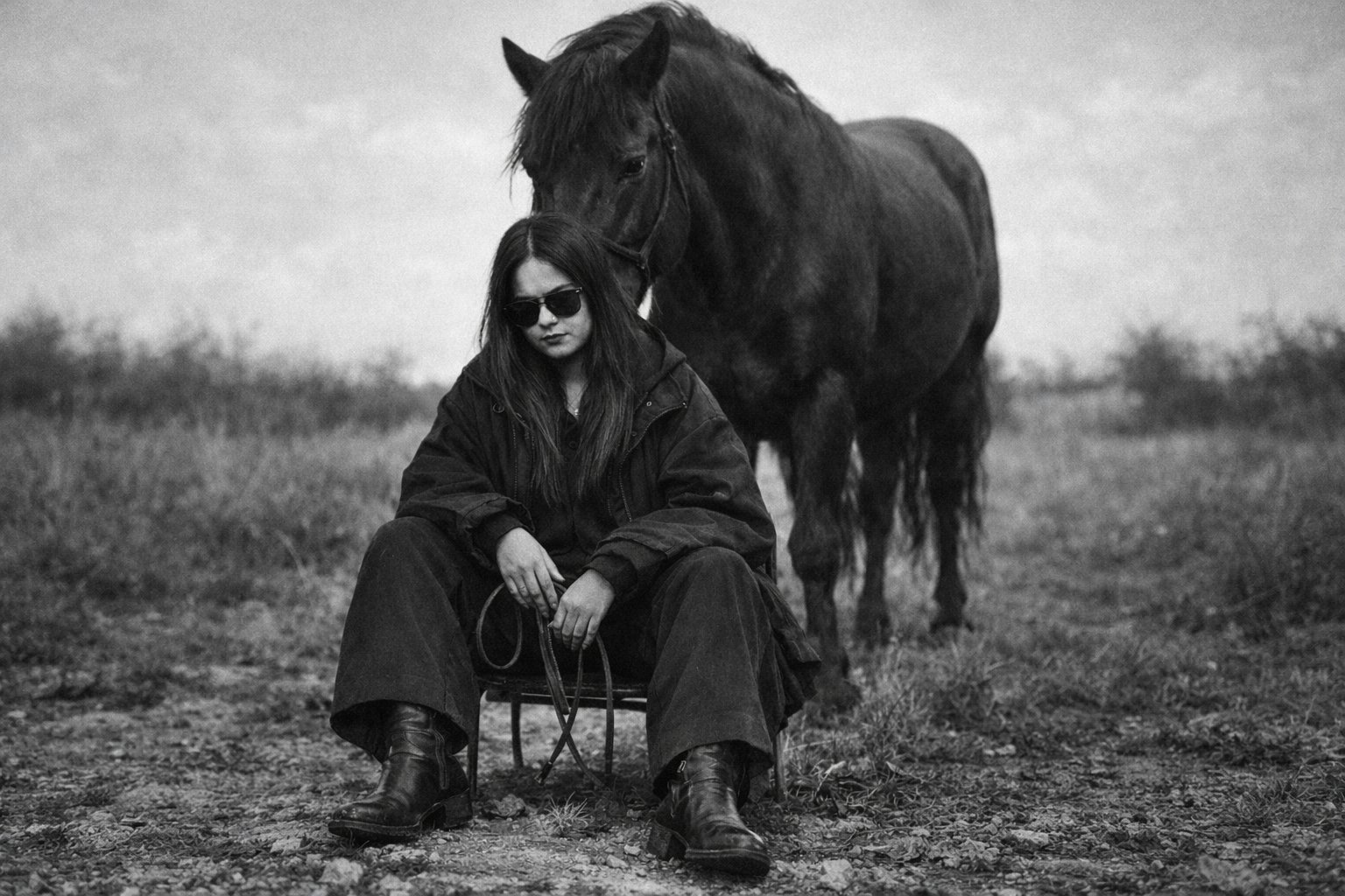 Aura Farm Black Horse Black and White Image Creation Prompt